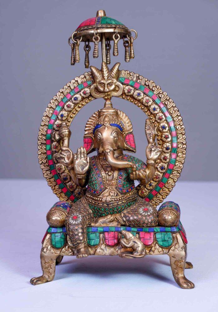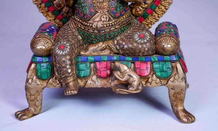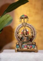 Infuse your decor with joy and wisdom through our Brass Antique Ganesha sculpture adorned with embedded multicolored stones. This handcrafted masterpiece stands out from other home accents with its vibrant burst of colors and charismatic personality. The intricate craftsmanship of this brass sculpture captures the essence of Ganesha, the Hindu deity of wisdom and prosperity. The embedded multicolored stones add a touch of enchantment and visual delight, making it a captivating centerpiece in any space. Let the presence of this colorful Ganesha sculpture inspire joy, wisdom, and a vibrant energy that uplifts your surroundings and fills your life with positivity.