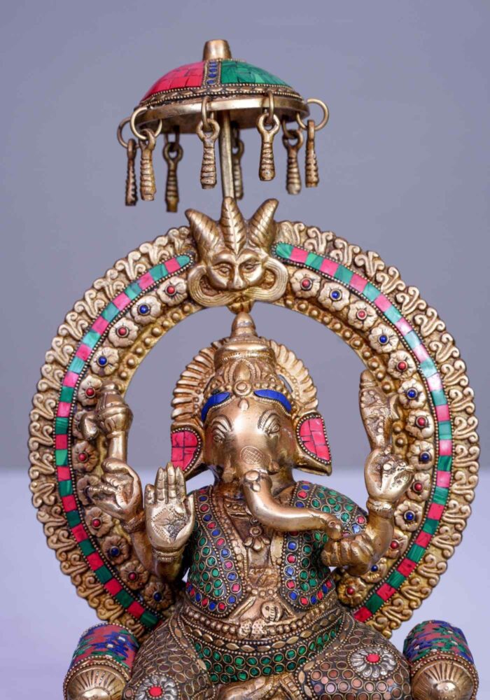 Vibrant brass Ganesha sculpture, a joyful symbol of wisdom.