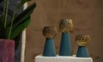 Gold Blue Ceramic Vase – Set of 3