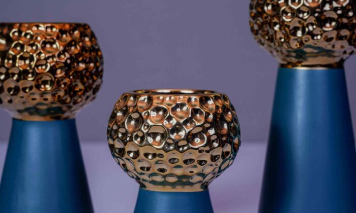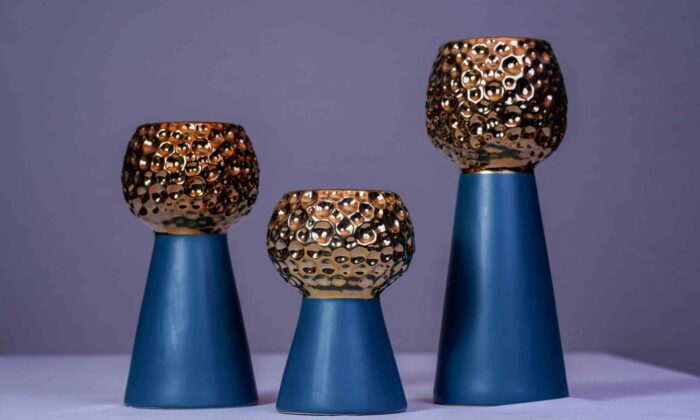 Gold Blue Ceramic Vase – Set of 3