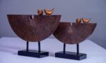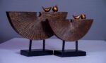 Golden Birds Perched on Wooden Tree Sculpture