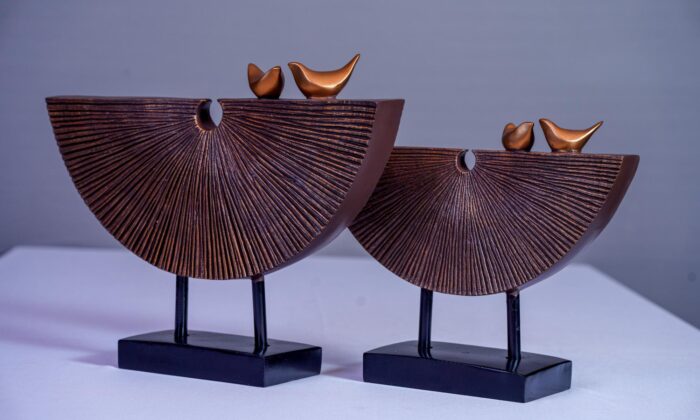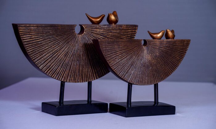 Elevate your home decor with this exquisite sculpture featuring two golden birds gracefully perched on a wooden tree. Nature comes alive indoors with this captivating piece that effortlessly ties together any room. Its timeless design and neutral palette make it versatile and easy to style for any space. Crafted with attention to detail, this eye-catching sculpture brings a touch of elegance and nature’s beauty to your living space. Embrace the serenity and charm of the outdoors in the comfort of your home with this stunning golden birds on a wooden tree sculpture.