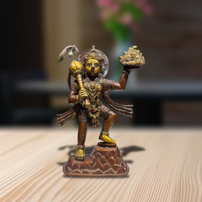 Hanuman Carrying Sanjeevani Parvat – Antique Finish Idol
