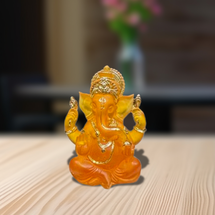 Golden Orange Lord Ganesha Idol – Seated Blessing Pose