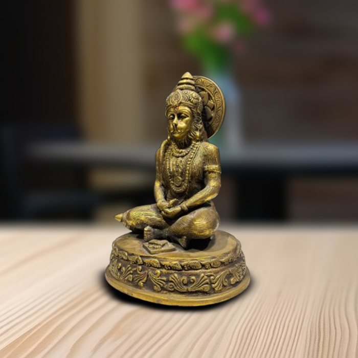 Seated Hanuman Idol in Meditation – Antique Brass Finish