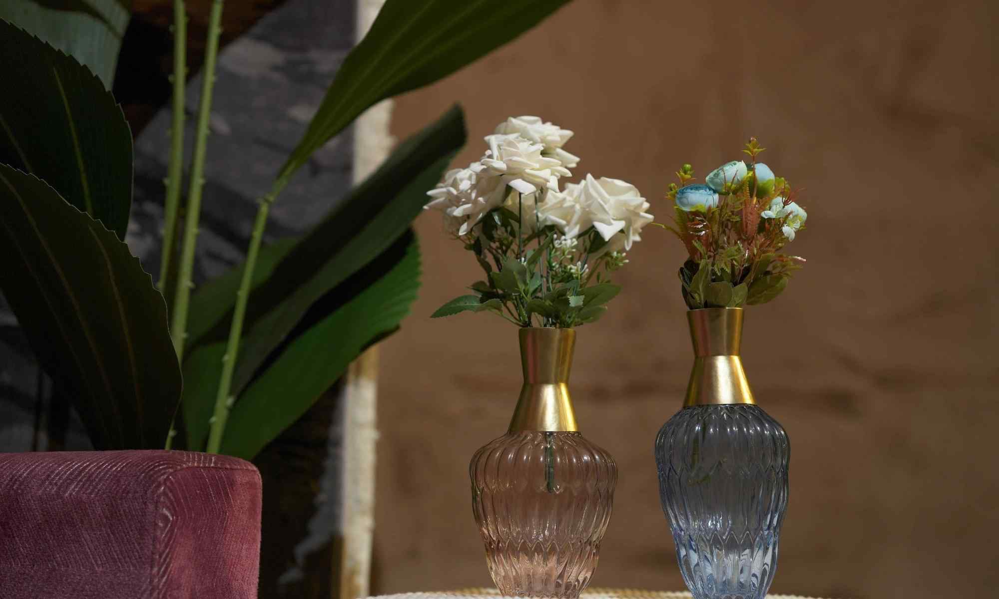 Add a fanciful splash of color to your space with the Pink and Blue Glass Vase Set. These two vases boast a curvy, retro-inspired shape that exudes midcentury modern style. Crafted from handblown glass, each vase possesses an artisanal, one-of-a-kind feel, elevating their charm and uniqueness. Whether grouped together for a sweet pastel arrangement or placed in different rooms to spread the cheer, these vases are sure to catch the eye and brighten up any corner of your home. Embrace the delightful combination of pink and blue hues and infuse your decor with a touch of whimsy and vintage flair.