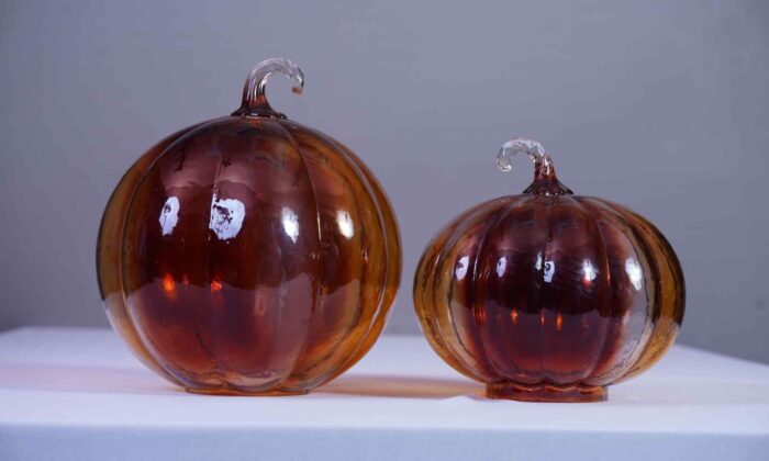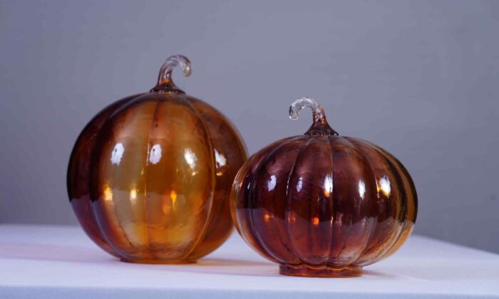 Pumpkin-shaped Crystal Candle Holder – Set of 2: Illuminate your living space with radiance and romance.