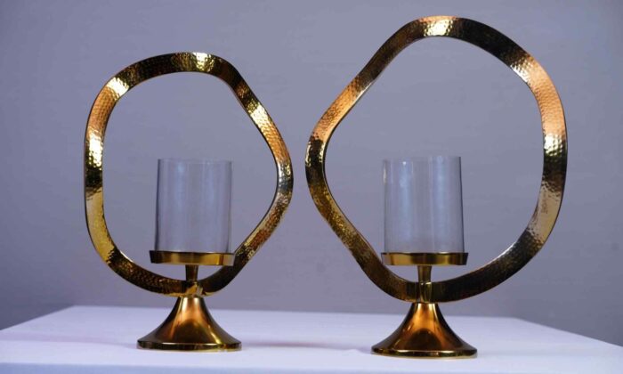 Rustic Metal and Glass Candle Holder – Set of 2: Illuminate your space with vintage charm.