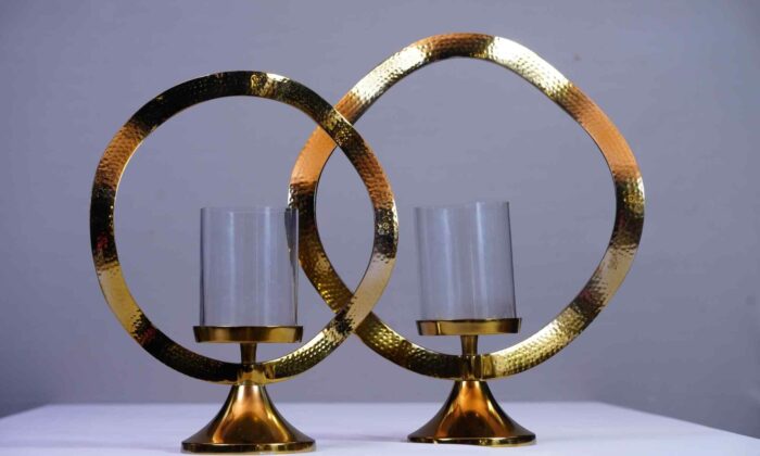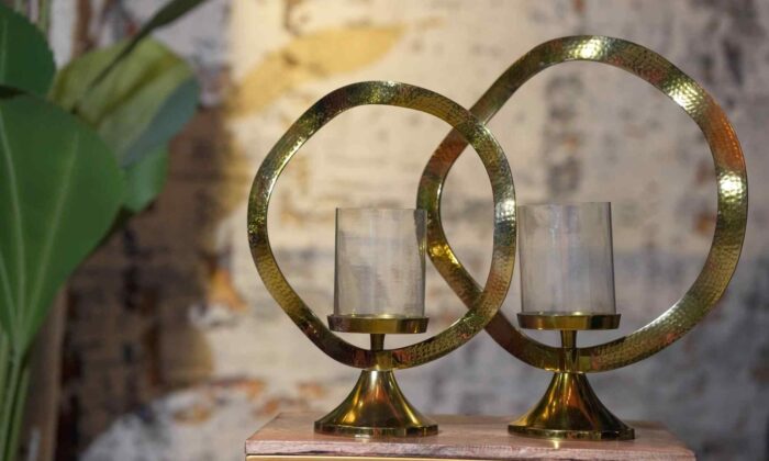 Rustic Metal and Glass traditional Candle Holder – Set of 2