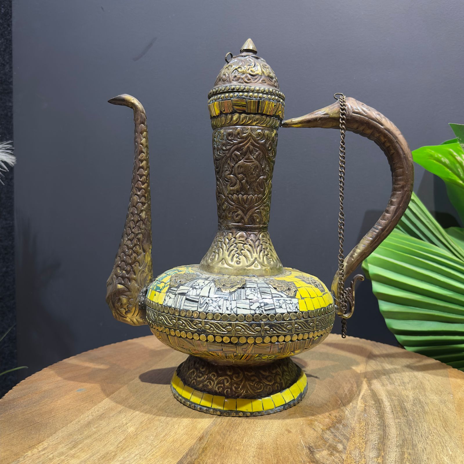 Vintage Brass Mosaic Arabian Pitcher