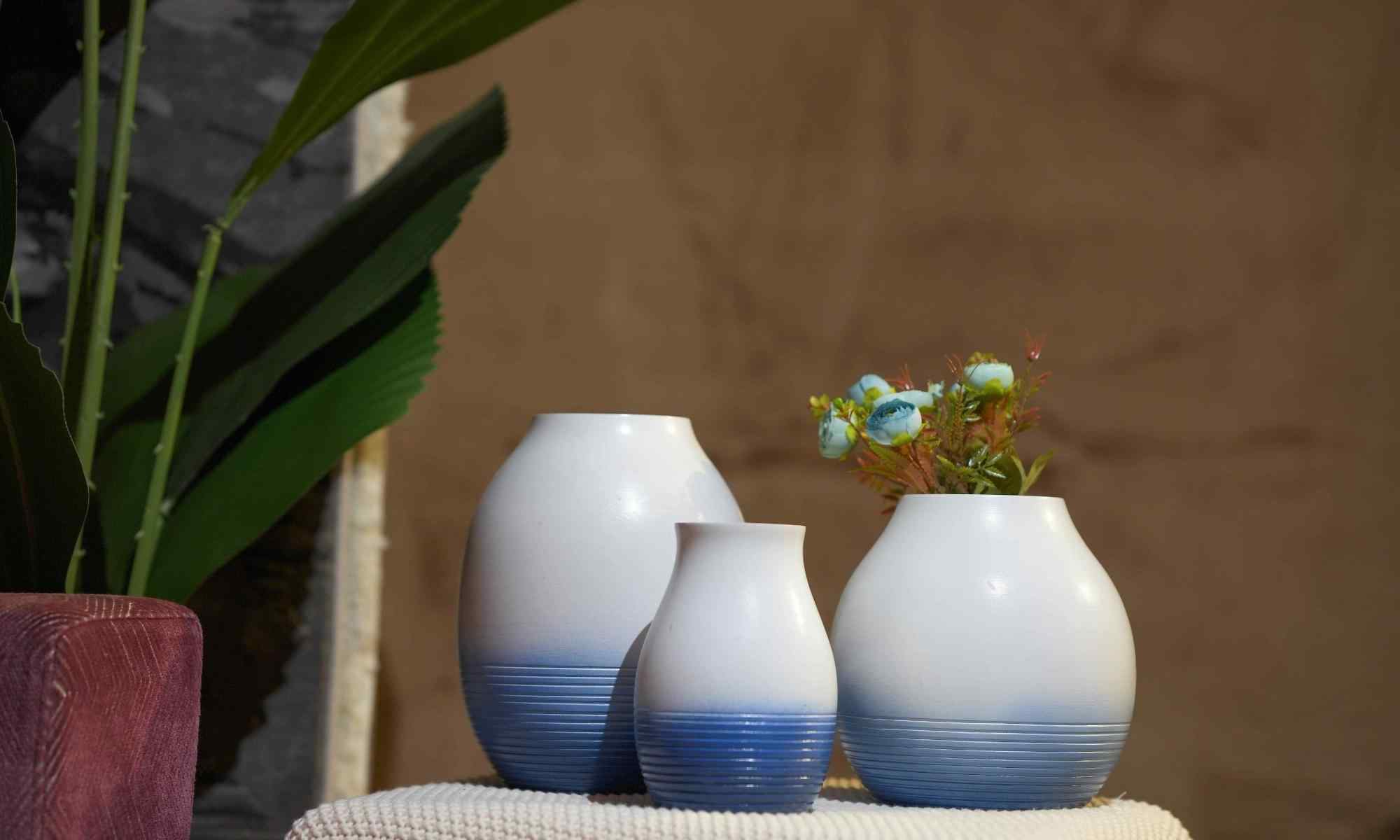 Create a stylish statement piece with the Wooden White and Blue Vase Set. Whether grouped together or scattered throughout your home, their natural wood tones and handcrafted charm bring rustic elegance to any space. These vases stand beautifully on their own, but when filled with a seasonal bouquet, they truly come alive, adding a touch of nature’s beauty to your decor. Versatile and visually captivating, these vases effortlessly blend rustic and modern aesthetics, making them perfect for various interior styles. Embrace the timeless appeal of handcrafted craftsmanship and elevate your home decor with this stunning set of three wooden vases.